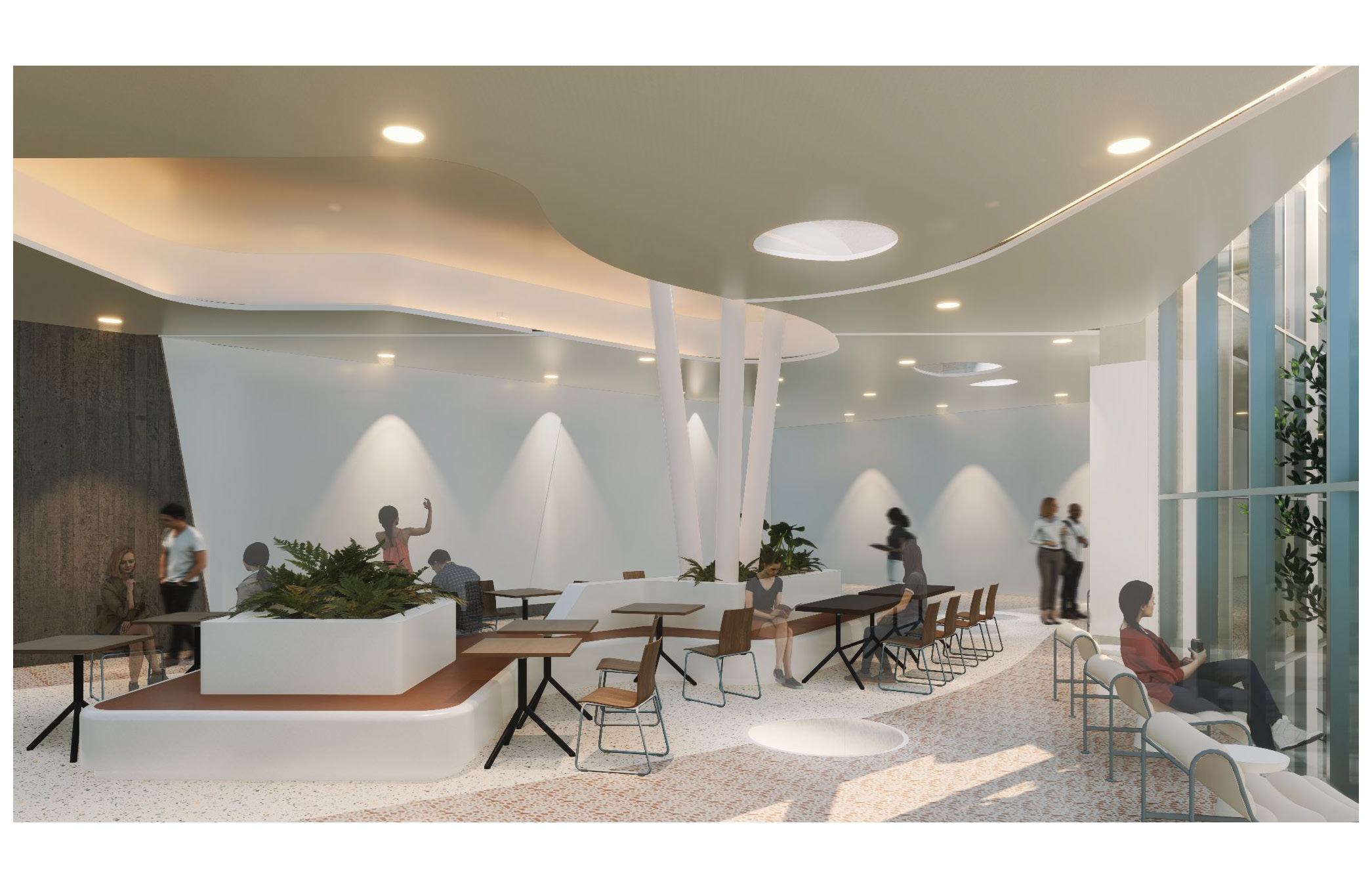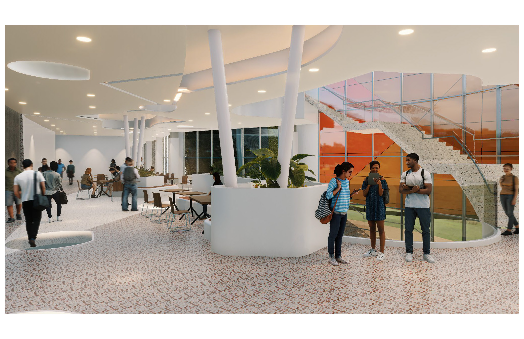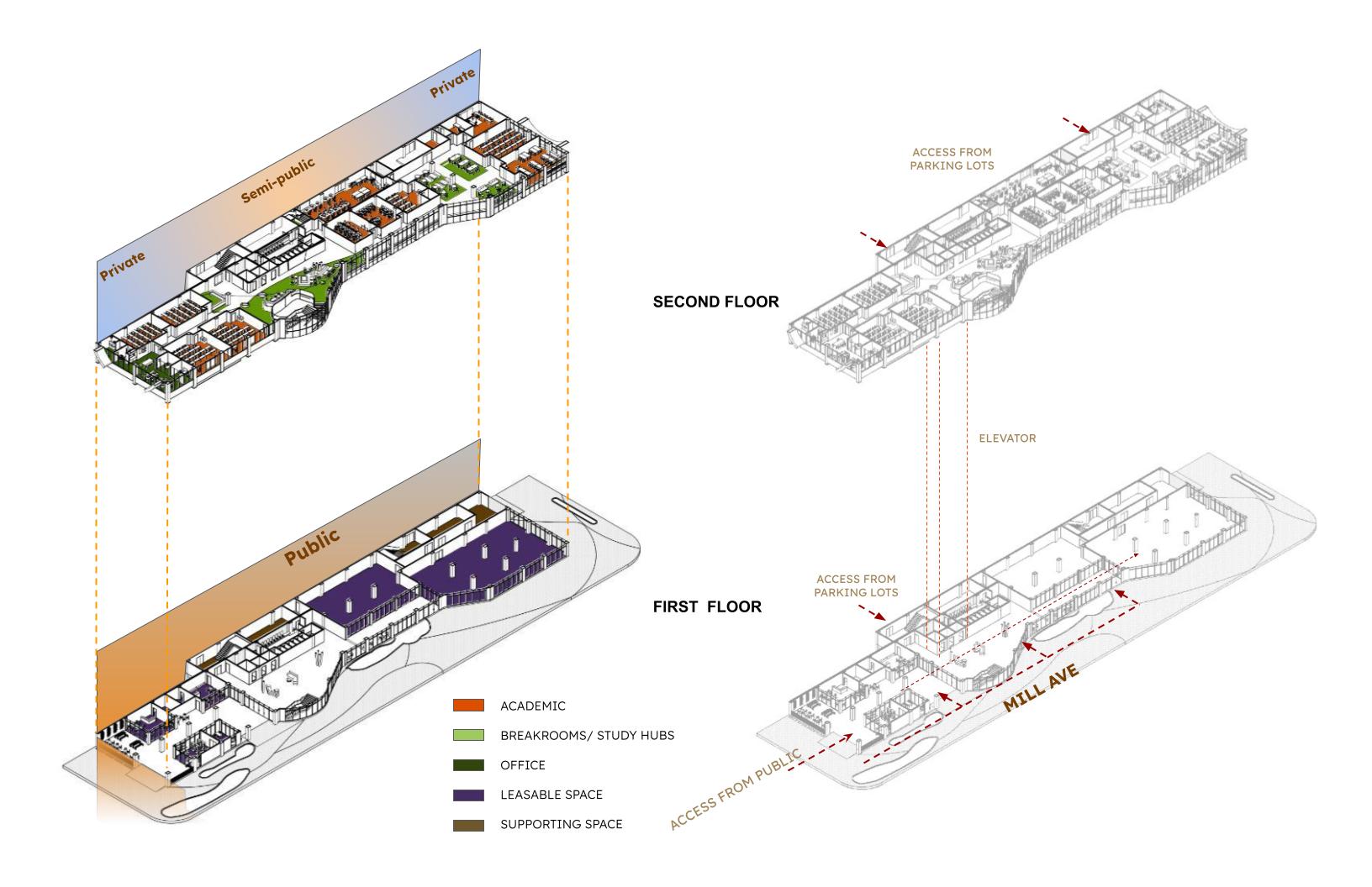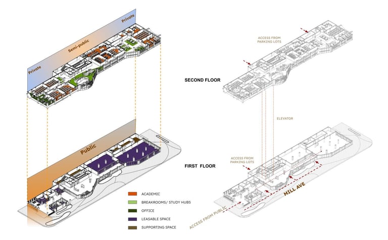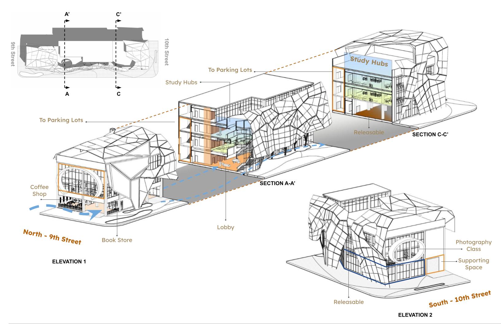 While on its north side, Omni hotel and Mirabella living building provide comfort and convenience, while the south side boasts a museum and art theater, enriching cultural experiences. Facing residential areas to the west, it fosters a sense of belonging among residents, while to the east, it embraces the student campus, fostering a dynamic blend of cultures, generations, and art.