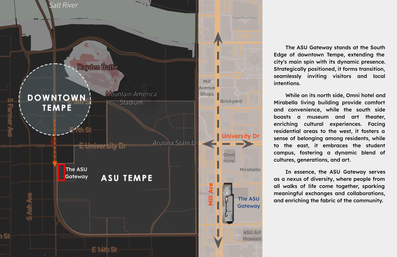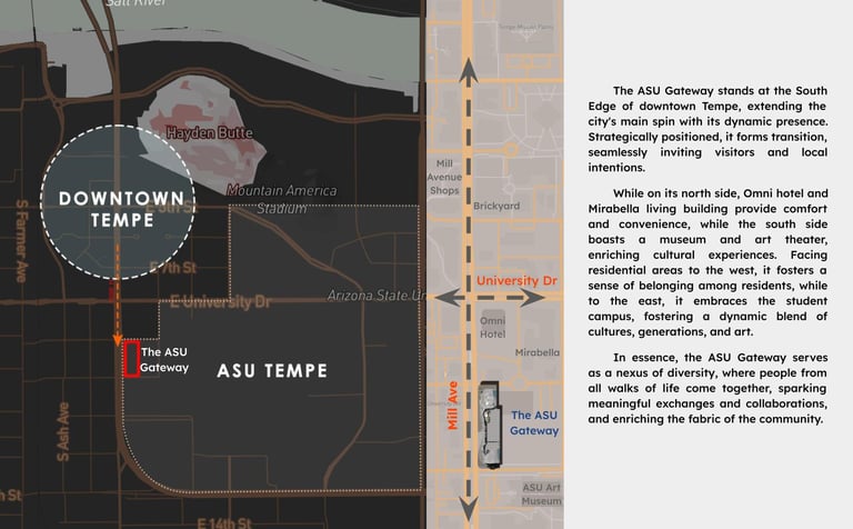 The ASU Gateway stands at the South Edge of downtown Tempe, extending the city's main spin with its dynamic presence. Strategically positioned, it forms transition, seamlessly inviting visitors and local intentions.