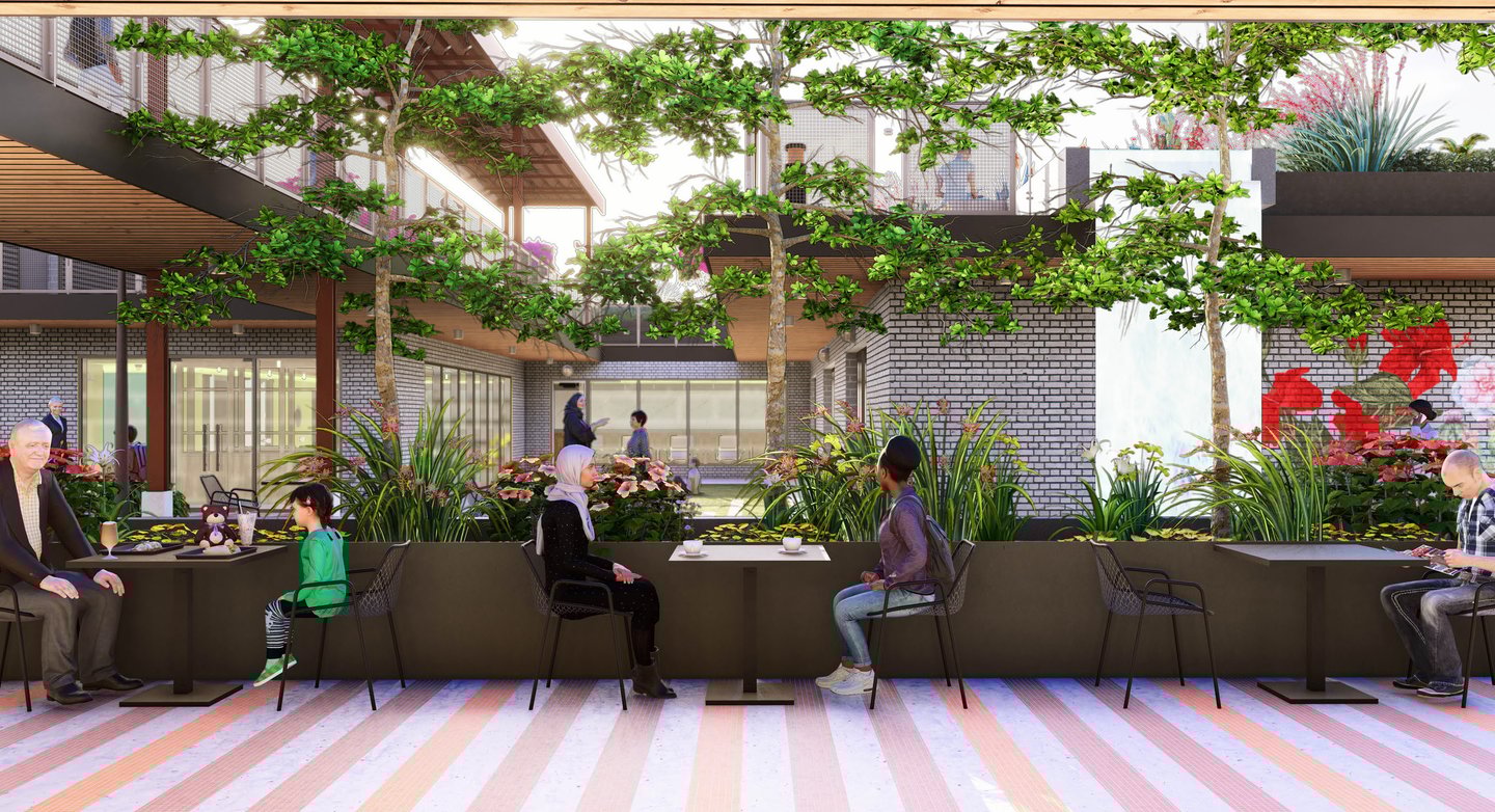 Our goal was to explore the relationship between Ethics and Aesthetics, based on local social and economic conditions, with the aspiration to bring a dignifying design to ALL. To bring this vision to life, we chose an existing mid-century modern building from the 1960s and transformed it into a vibrant commercial complex that celebrates the beauty of preservation while meeting contemporary needs.