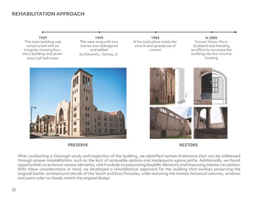 The Phoenix is a mythical bird with colorful plumage that is said to be either from Arabia or India. Legend said that there is only one Phoenix alive at a time. It has a 500-year life cycle, near the end of which it builds itself a nest of incense and sacred materials that it then ignites. The bird is then consumed by the fire of its nest, but from its ashes a young Phoenix rises, reborn anew. Likewise, as Monroe Street Abbey was once ignited and turned to ash, VIS Interior Architecture wants to revive it for adaptive reuse, giving it another life, as part of its rebirth.