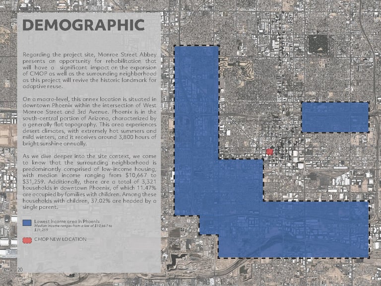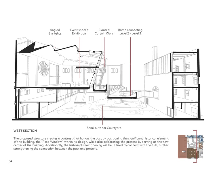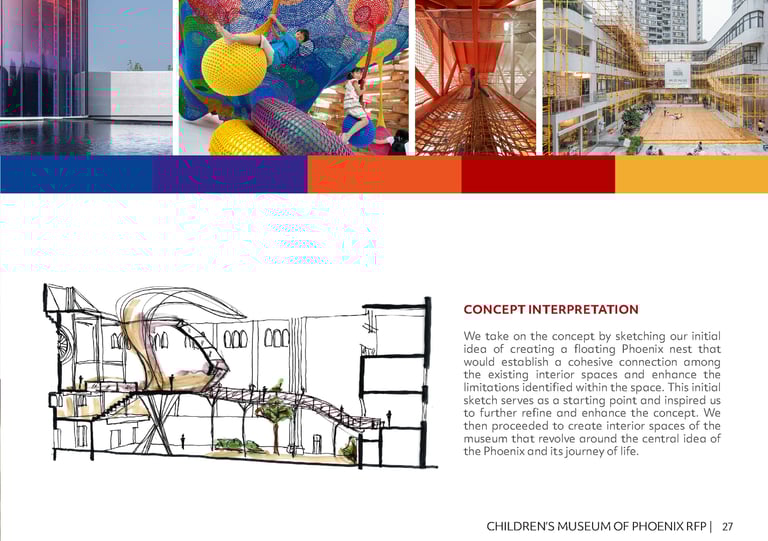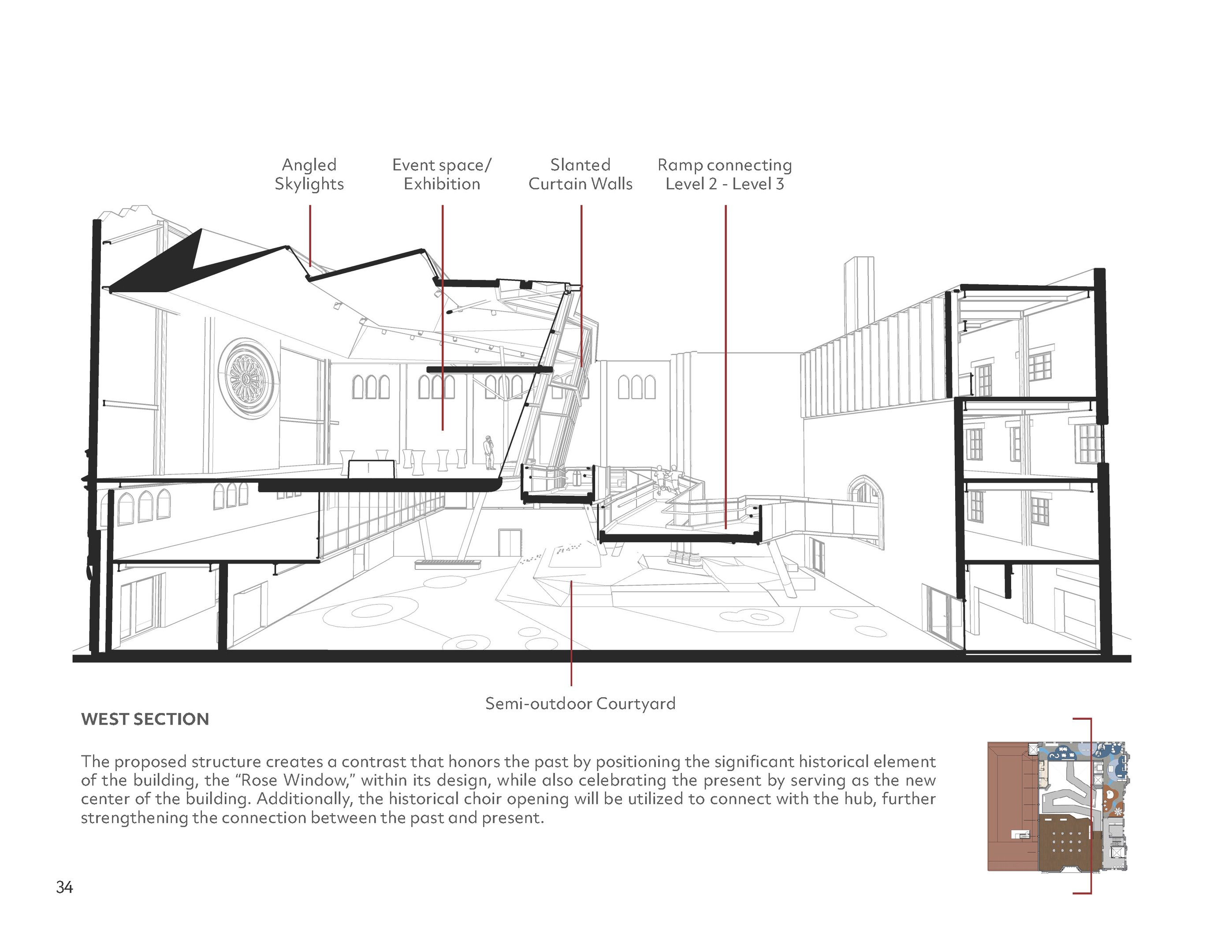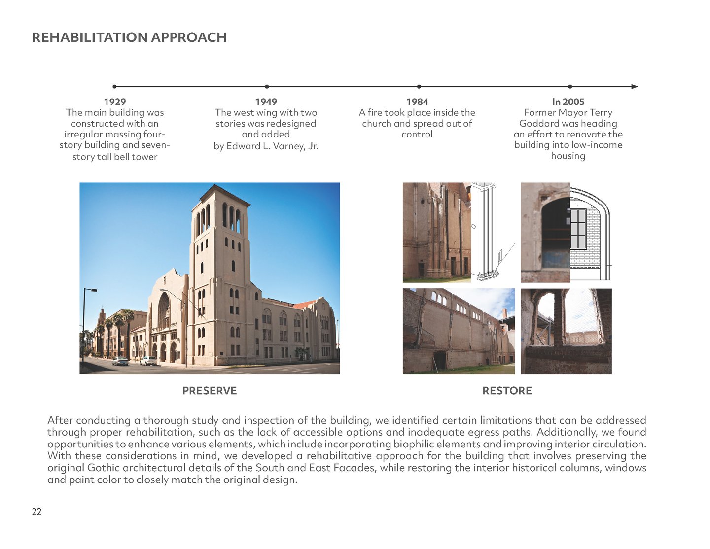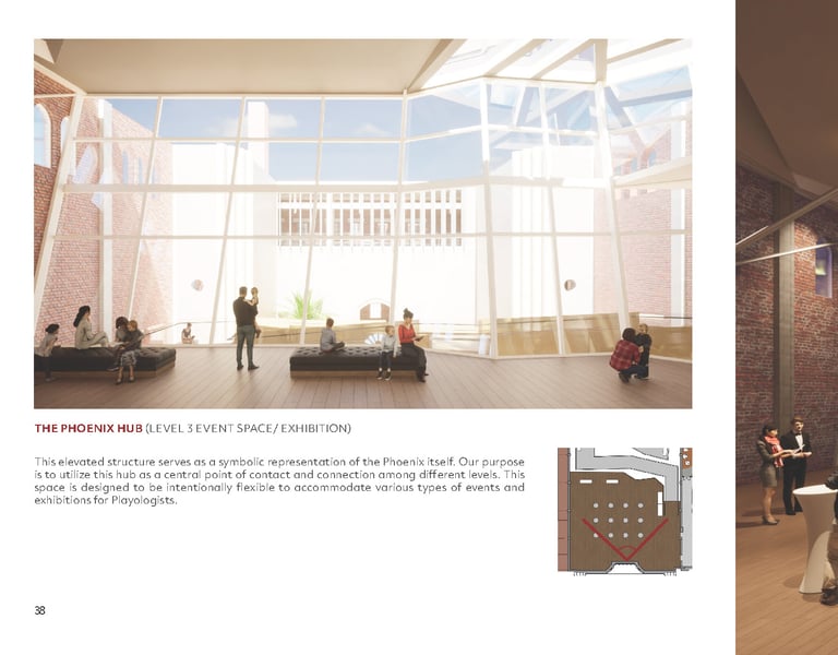 The Phoenix is a mythical bird with colorful plumage that is said to be either from Arabia or India. Legend said that there is only one Phoenix alive at a time. It has a 500-year life cycle, near the end of which it builds itself a nest of incense and sacred materials that it then ignites. The bird is then consumed by the fire of its nest, but from its ashes a young Phoenix rises, reborn anew. Likewise, as Monroe Street Abbey was once ignited and turned to ash, VIS Interior Architecture wants to revive it for adaptive reuse, giving it another life, as part of its rebirth.