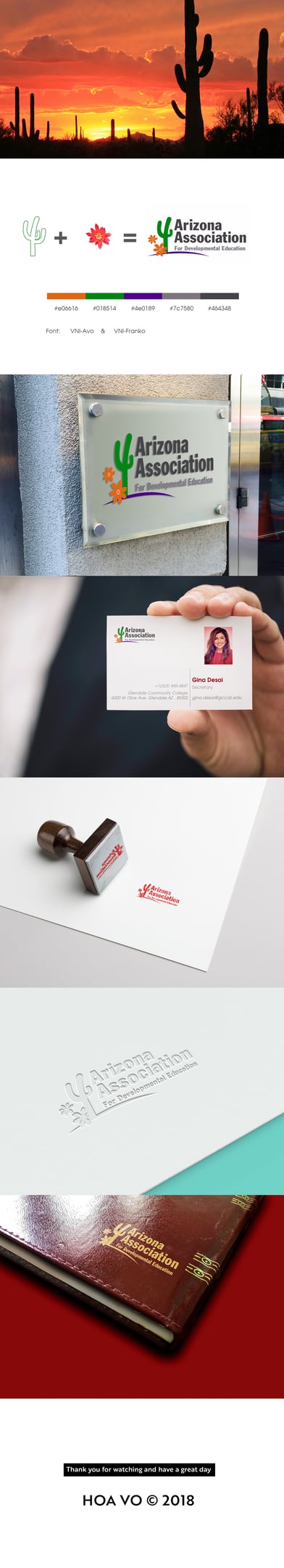 Commissioned in 2018 to design the logo for the Arizona Association of Developmental Education, an organization dedicated to supporting developmental education and student success. The design incorporates a cactus and flower, symbolizing growth, resilience, and learning—reflecting the association’s mission to nurture academic development in Arizona’s unique landscape.